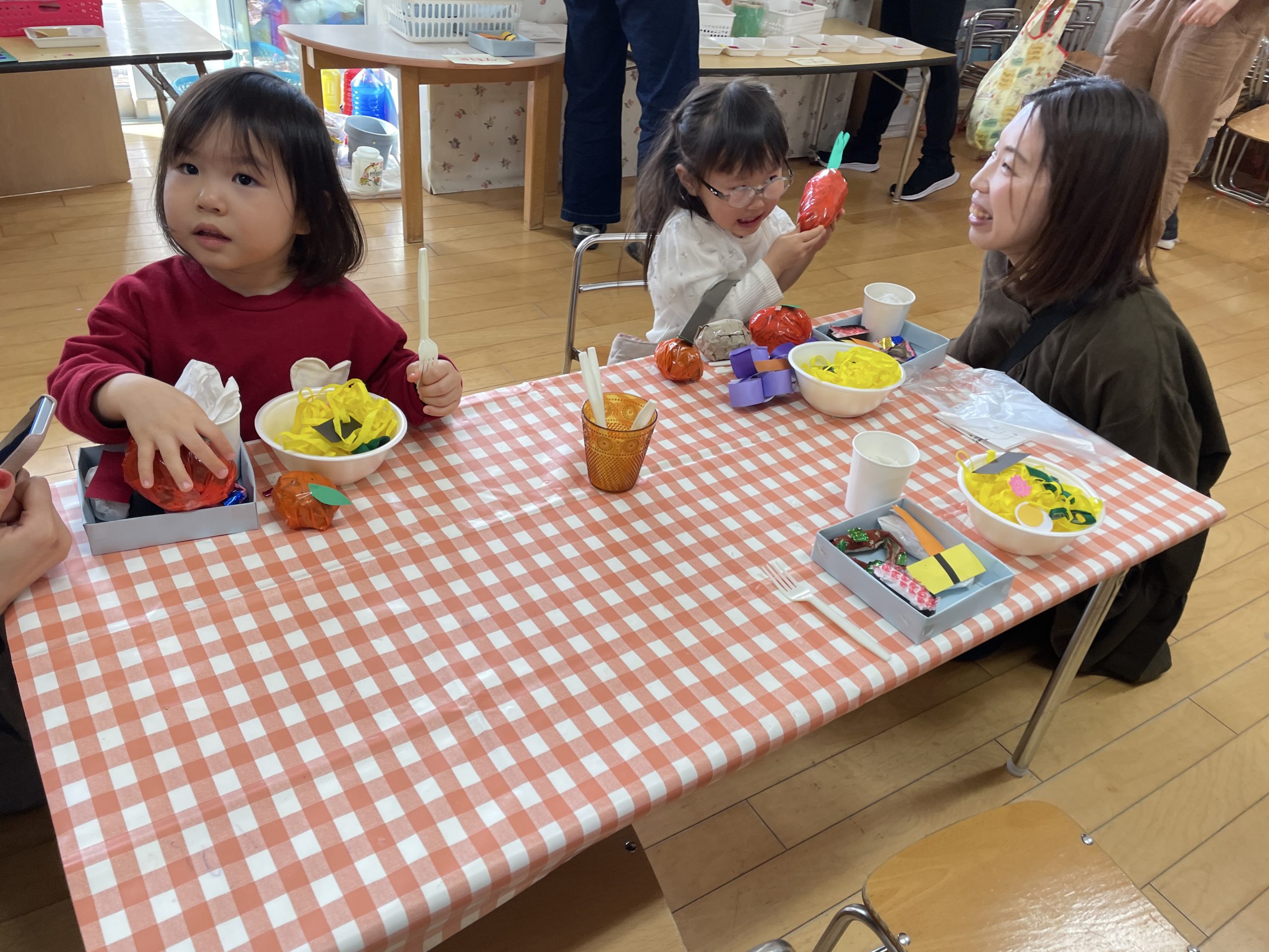 最後はテーブルに食べ物を広げて「いただきまーす!」